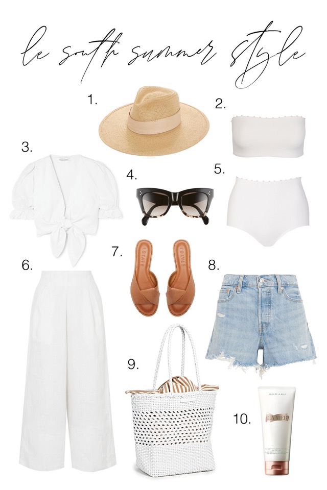 A chic swimsuit, a hat that can transition from the beach to dinner, comfortable flats, a versatile set that you can easily pair with a classic pair of cut offs, a large tote (I’m loving the striped cover in this one), your favorite sunglasses, and of course, sunscreen. Other than that, I’m packing a couple of flowy dresses for dinners by the water and that’s it!