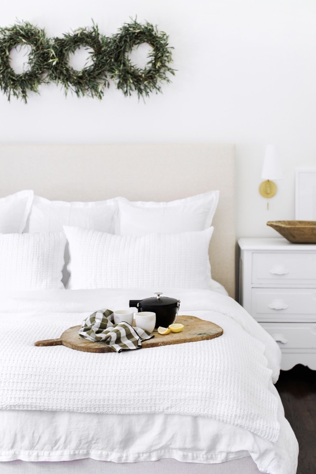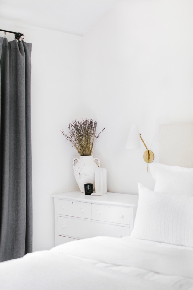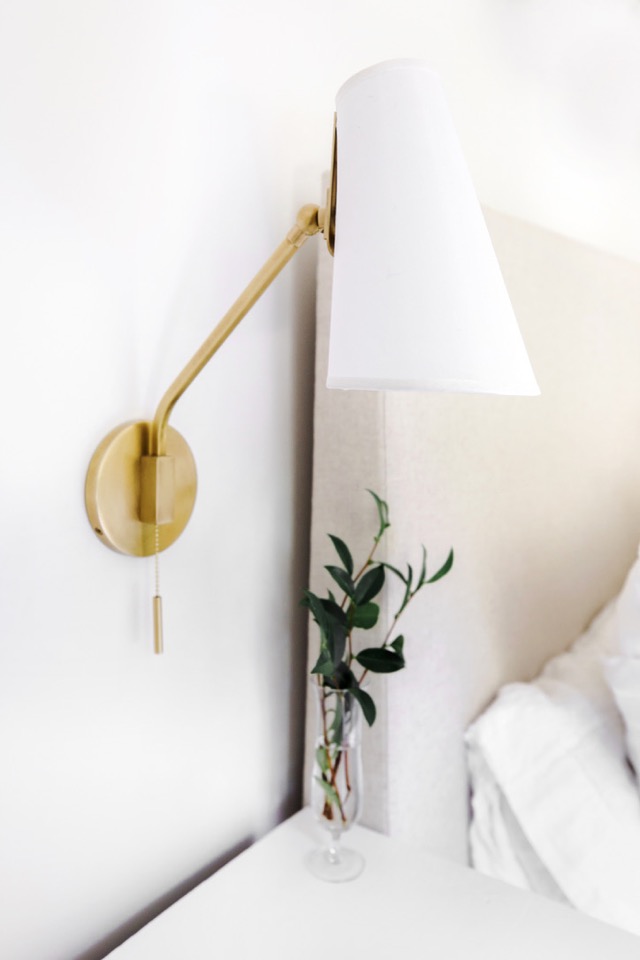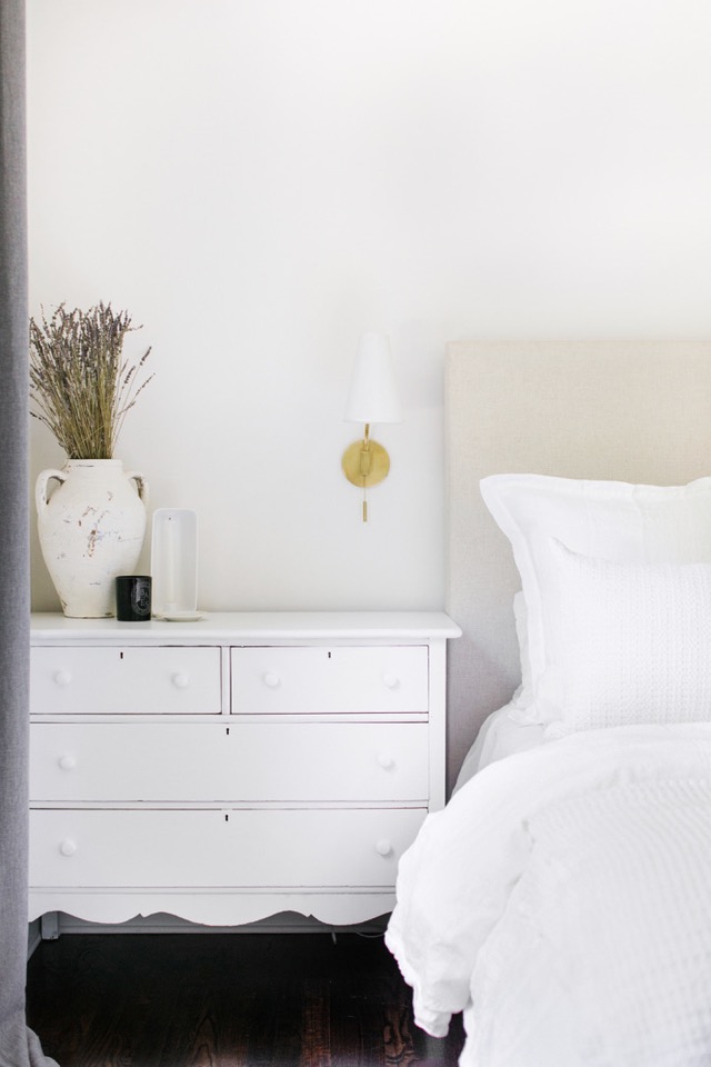 I hope you’ve all had a great week! I’m so excited to finally be sharing our updated master bedroom tour with you! Next month will be two years since we’ve been in the lovely cottage and I must say, it’s taken that long to design this space the way we want it. We still have a couple of things to do in this room for it to feel complete, but our new Essex Bed from Maiden Home was a huge step in the right direction. (You may remember our Living Room Tour with Maiden Home, as well – we love supporting + staying loyal to brands we believe in!) Our bedroom gets a ton of morning light, which we love, so our goal has always been to keep this space light, airy, neutral, and minimal. The moment we laid our eyes on this bed we knew it would completely change our space. We love the straight lines, giving us that minimal, farmhouse feel we crave, but decided to go with the Creme Performance Linen Fabric to give us that soft, Parisian touch. The Essex is a bit more modern too, with it’s straight legs, and we went with the Washed Oak for a natural + causal finish to complete our custom bed. Maiden Home just launched their bedding collection about 2 months ago and we’re proud to say that The Lovely Cottage was the first home to have one of their beautiful, new beds!